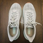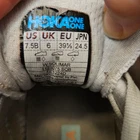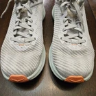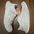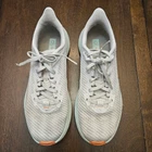 Hoka One One Sneakers Womens Size 7.5 Solimar stardust / aqua breeze Running Shoes The Solimar Women's Solimar Running Shoes is a runner's soulmate for everyday running with comfort, function, and balance in mind. These shoes are made with a stretchy recycled mesh that will wrap around your foot comfortably, a balanced compression-molded foam midsole, and a high-abrasion rubber outsole that will keep you stable and firm with each stride you made. They have a neutral symmetrical cushion bed that will help keep you stable and an anatomical Aanatomicalnstrction that will continuously provide a supportive fit for all-day traveling. The Solimar Women's Solimar Running Shoes will be your go-to pair for constant comfort in all of your daily activities! Pre owned condition. Photos show running wear to the soles, please zoom in and look closely. Marks on the top in some places. They may not come clean, I am not sure! These shoes would be great to wear casually for comfort, given the wear. Maybe around the yard, or for walking, etc. Bundle for a discount, or send an offer