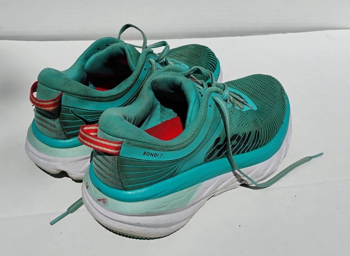 The Hoka One One Women's Bondi 7 1110519 AEBL Blue Running Shoes Sneakers in size 8.5 are a stylish and comfortable choice for active women. Featuring a lace-up closure and a rubber outsole, these sneakers are perfect for running and jogging. The breathable synthetic upper material and comfortable design make them suitable for all seasons, from winter to summer. The solid blue color and athletic style make these shoes a versatile option for casual wear or sports activities. Made in Vietnam, these Hoka One One sneakers are a great addition to any woman's shoe collection.