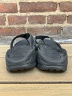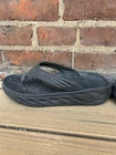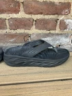The Hoka One One Ora Flip Flop Recovery Shoes in black rubber are designed for men in size 11. These sandals feature a comfortable flip flop style with a durable rubber outsole and upper material. The Hoka One One brand is known for its quality and performance footwear, making these shoes a practical and stylish choice for recovery and relaxation.