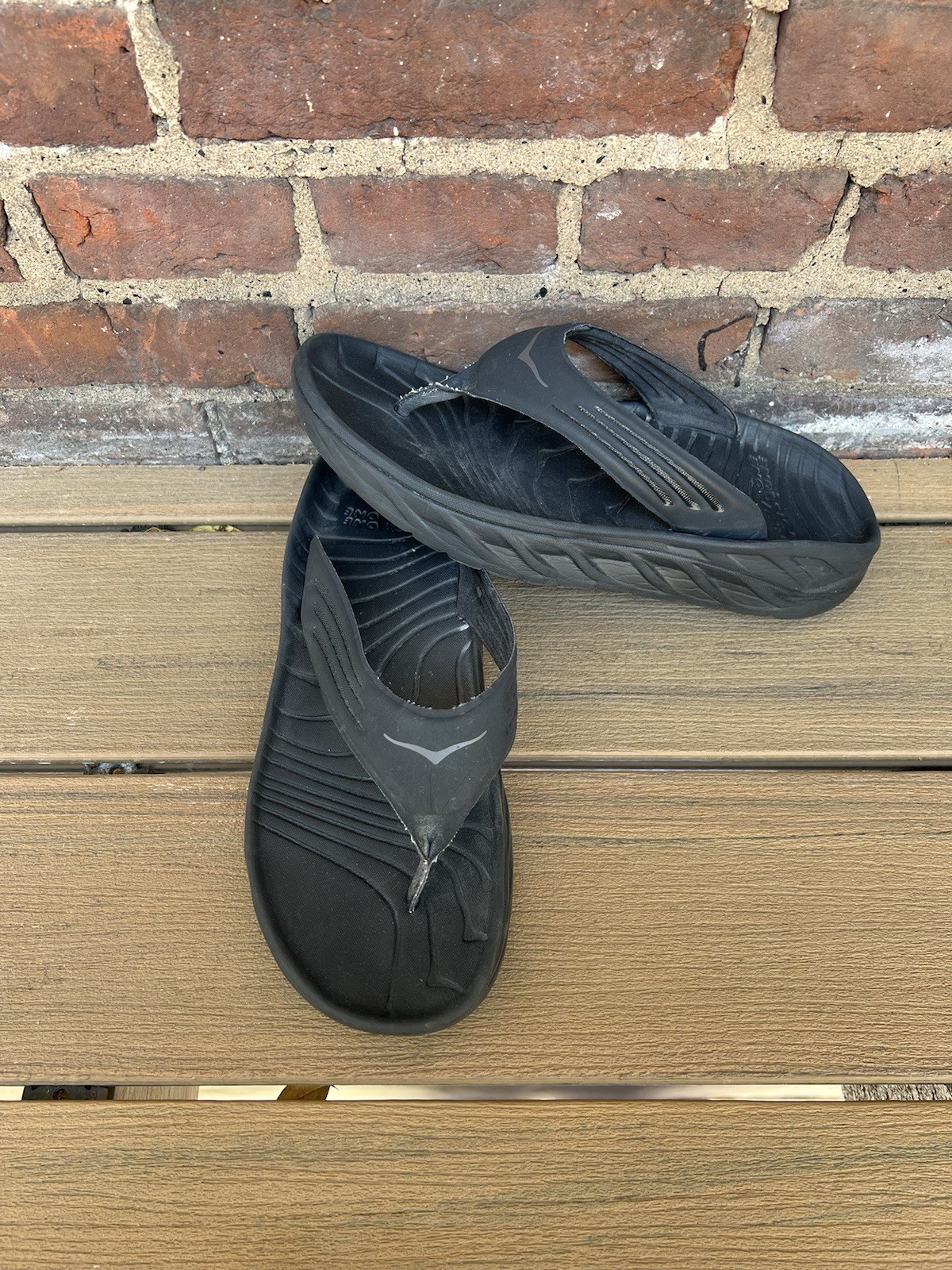 Love these Hoka recovery flip flops! Super comfortable right out of the box—the cushioning is amazing for tired feet. The rubber sole is sturdy but flexible, perfect for lounging or quick errands. Size 11 fits true to size, and the black design is sleek yet simple. Great for post-workout relaxation or everyday wear. Hoka quality shines through!