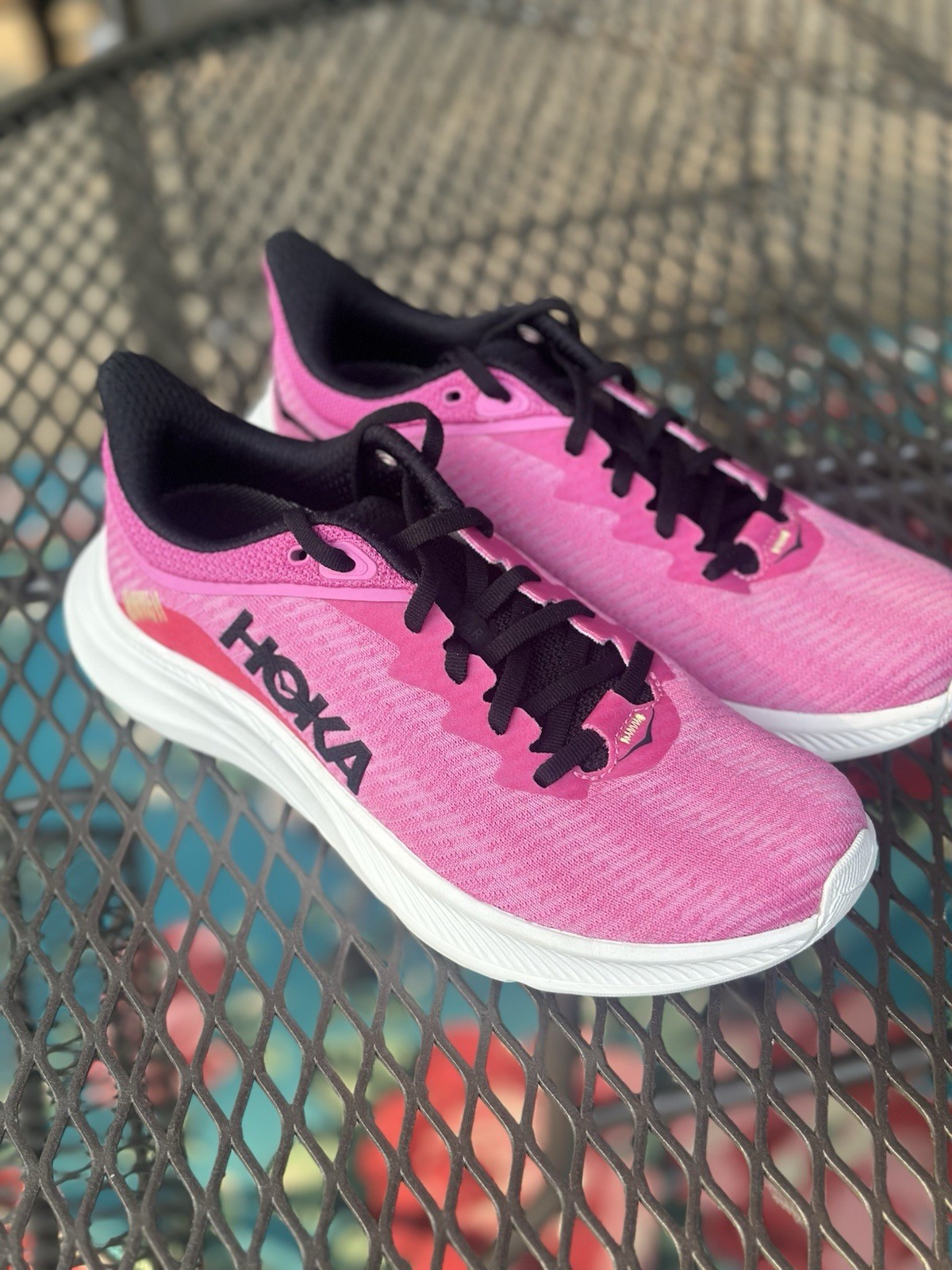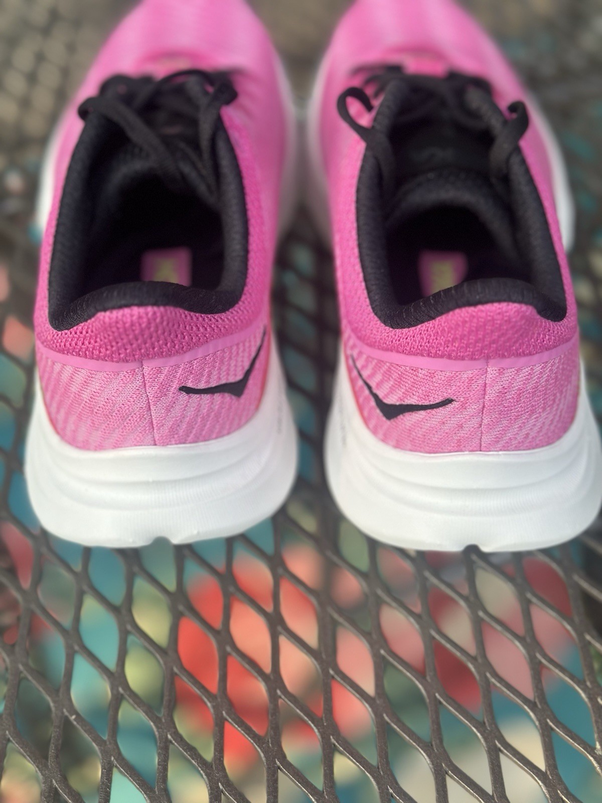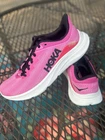New W/O Tags or Box but in mint condition! The Women's Hoka Solimar Running Shoes in size 7.5B feature a stylish design in fuchsia and black colors with a low-top shaft style and lace-up closure. These athletic sneakers with a rubber outsole and foam insole offer comfort and support for running and jogging activities. With a mesh upper material, they are perfect for summer, fall, and spring seasons, making them ideal for both activewear and casual occasions. Hoka One One, a reputable brand known for its quality athletic footwear, ensures durability and performance in these shoes.