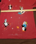 Comes from a pet friendly home. The penguins are partially embroidered and partially a felt like material.