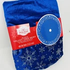 Holiday Time Blue Velvet Tree Skirt Silver Snowflake Edge 48 Inch Christmas