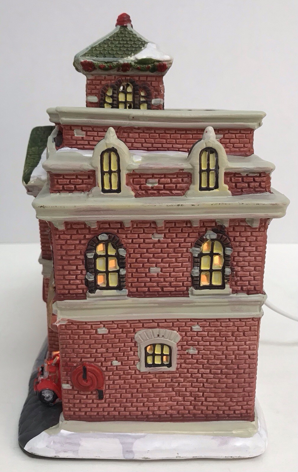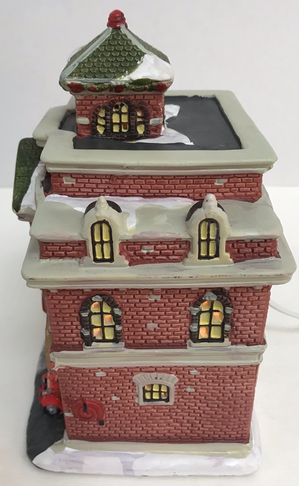 Holiday Time Christmas Village FIRE DEPARTMENT Vintage Victorian 2016 Lighs Up Building is in nice condition. The light switch is stuck in the on position. Please see photos for condition details.
