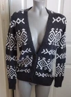 Wrap yourself in the cozy elegance of this Hollister Cardigan, a chic addition to any wardrobe. The classic black and white geometric pattern lends itself to a myriad of styling options. The V-neck design and long dolman sleeves offer a comfortable, flattering fit for a casual occasion or travel escapades. Its knit construction, blending cotton and acrylic, promises both warmth and durability. It's an ideal choice for the transitioning seasons of fall, spring, and winter. This cardigan is crafted with attention to detail, featuring a collarless neckline and a regular fit that maintains a sleek silhouette. Practical and stylish, it is machine washable for easy care, ensuring that this tight-knit piece remains a staple in your collection. Embrace the simple yet sophisticated charm of this sweater, accentuated with tasteful buttons. Pit to pit 19 inches Length shoulder to hem: 27 inches