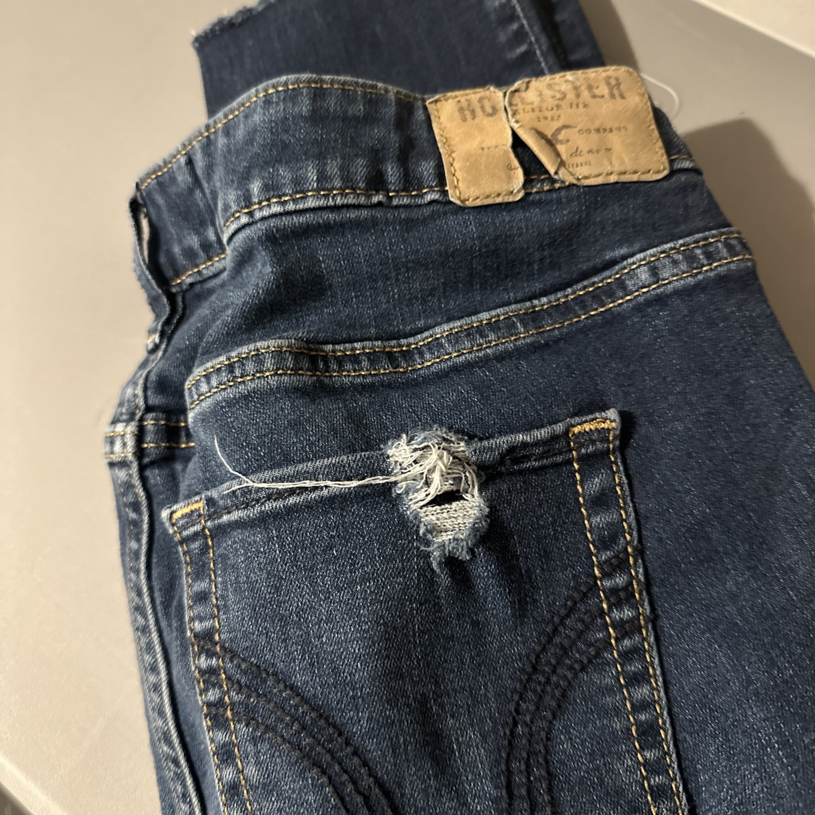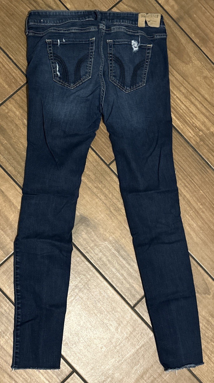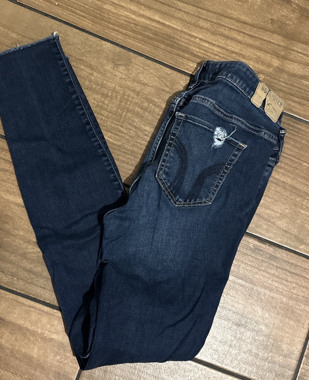 Hollister Jeans Juniors Size 9 High-Rise Super Skinny Dark Wash Distressed A5. Condition is Pre-owned - Good. Shipped with USPS Ground Advantage.