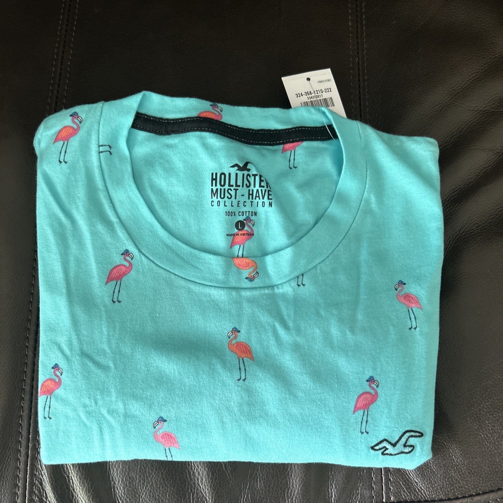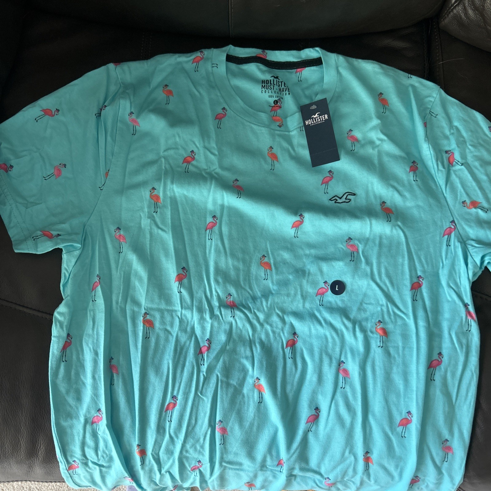 This Hollister tee is super soft and fits perfectly! The flamingo turquoise color is vibrant and eye-catching, making it a great staple for casual wear. The cotton fabric feels breathable and comfortable, ideal for everyday use. Love the laid-back California vibe—pairs well with jeans or shorts. Definitely worth adding to your collection!