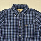 Hollister Men's Medium Blue Plaid Button-Up Preppy Long Sleeve Shirt Seller does NOT accept returns. See photos for measurements & flaws. Sizes vary depending on manufacturer & era. Please review item description, flaws & sizing prior to purchasing.