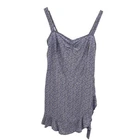 In the heart of summer's embrace, this enchanting dress speaks of sunlit meadows and gentle breezes. A delicate micro-floral pattern dances across the soft blue fabric, whispering tales of carefree days. Its ruffled hemline sways with each step, while the sweetheart neckline frames the wearer's smile, capturing the essence of youthful grace. • Wrap dress with shorts • Sweetheart neckline • Ruffle hem • Elasticated back • Adjustable shoulder straps • Machine washable • Made in India No visible condition flaws. Measurements: Bust = 14", Waist = 31.25", Hip = 15.75", Hem = 22.5"