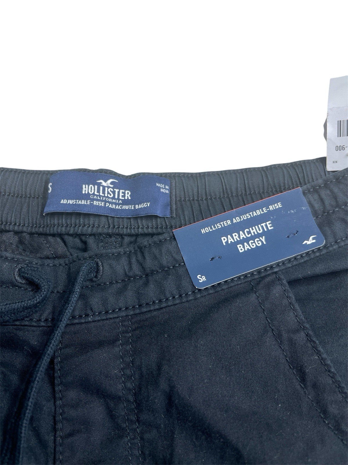 The Hollister Parachute Cargo Pants in size S are a stylish and comfortable option for casual wear, featuring a high rise and wide-leg fit. Made from lightweight cotton material, these black pants are machine washable and perfect for the summer, fall, or spring seasons. With a flat front design and cargo style, these pants offer a trendy look with added convenience from the pockets. Perfect for women who appreciate a baggy, trendy yet practical wardrobe staple.