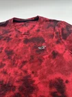 This is a Hollister men's T-shirt in size Medium, featuring a solid red color with an embroidered logo on the front. The shirt has short sleeves, a crew neck, and is made of polyester and cotton material. It has a regular fit and is easy to care for. The classic themed T-shirt is branded by Hollister and was manufactured in Vietnam. *Check the images above for the flaws and measurements of the item.