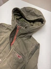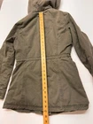 Preowned, good. Minor flaws include stain on chest pocket and knick in fabric at lower side seam (see last two photos) - no longer has snap on fur for around the hood. Zipper works well and is in excellent condition. Size Medium Measurements in photos. Armpit to Armpit 18" Length 27"