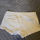 The Hollister Light Wash Distressed Cut Off Frayed Booty Shorts in size 7 are a stylish and comfortable choice for the summer season. Made from 99% Cotton and 1% Elastane, these denim shorts feature a low rise fit with a 2.0 inch inseam. The distressed detailing and button accents add a trendy touch, while the fraying and cuffed hem give them a unique look. These white shorts with a solid pattern are perfect for casual occasions and can be easily cared for with machine washing. Whether you're heading to the beach or just out for a casual walk, these Hollister shorts are a fashionable choice for your summer wardrobe.