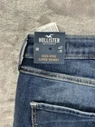 Elevate your casual style with these Hollister women's high-rise skinny jeans in a dark wash blue denim. Made with a super stretchy blend of cotton, polyester, and cotton blend fabrics, these jeans provide a comfortable fit that moves with you. The button closure and low-rise waistband with a 27-inch waist size make them easy to slip on and wear all day long. Featuring a solid pattern and the Hollister logo as an accent, these jeans have pockets for added convenience. They are perfect for any season, whether you're out for a casual walk or running errands. Get your hands on these slim-fitting jeans today and upgrade your wardrobe!