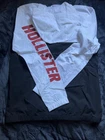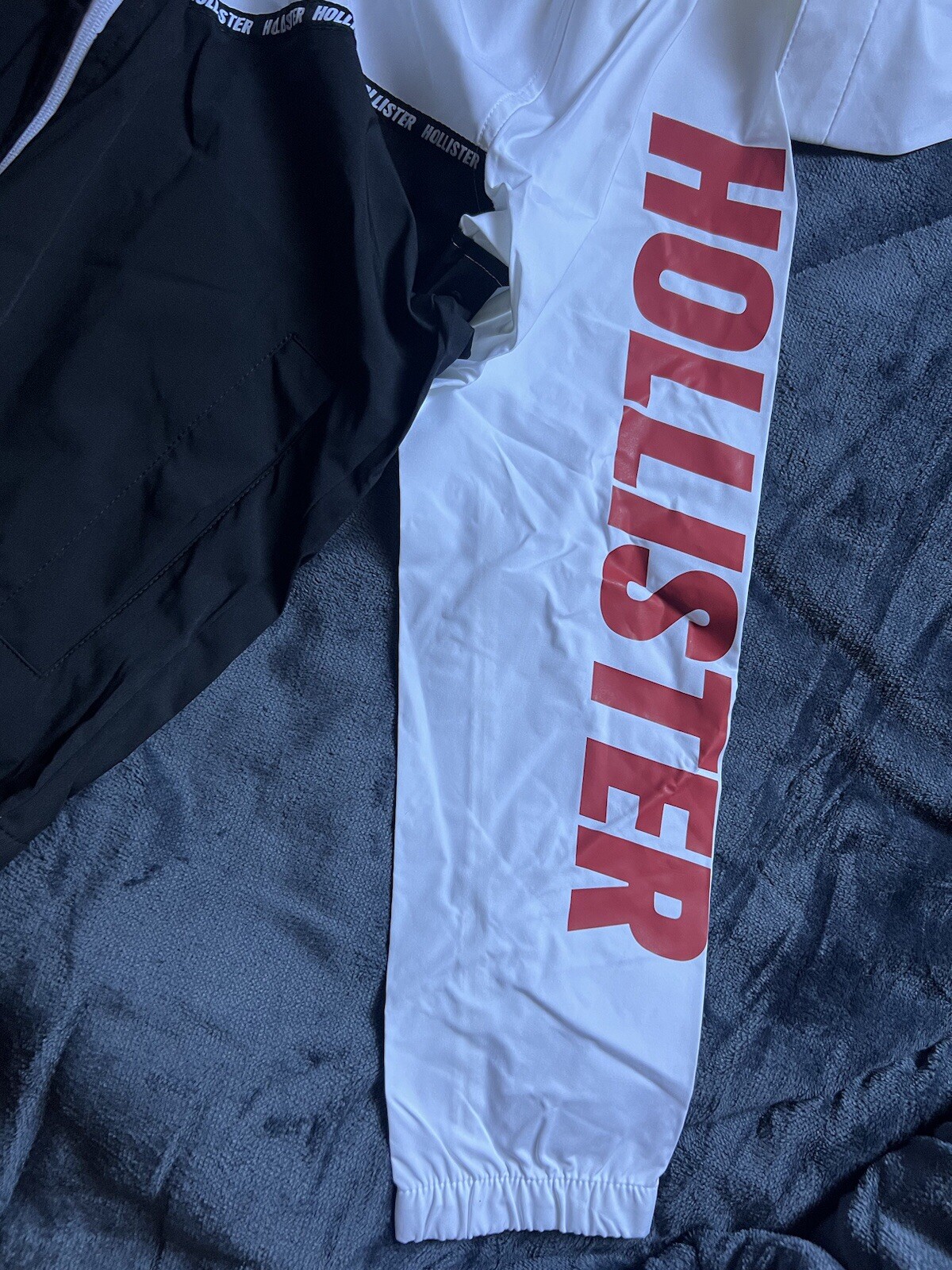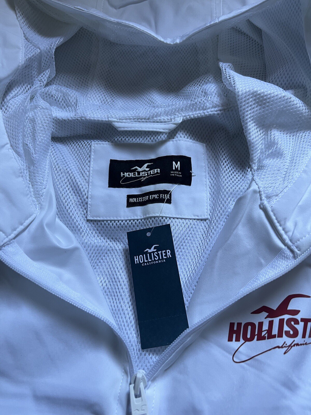 Hollister California Epic Flex Windbreaker Jacket Women’s Size M NWT Snap pockets Branded lettering on one sleeve Color- white, black, and red