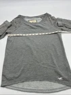 The Hollister Long Sleeve Blouse in X-Small size is a stylish and versatile addition to any woman's wardrobe. Made from a blend of polyester and cotton, this blouse features a round neck, long sleeves, and a pullover closure, making it easy to wear for casual occasions. The gray color and lace fabric add a touch of elegance, while the regular fit ensures comfort. With a classic design and easy-care features, this blouse from Hollister is a basic yet chic staple for any woman looking for a solid yet fashionable top. *Check the images above for the flaws and measurements of the item.