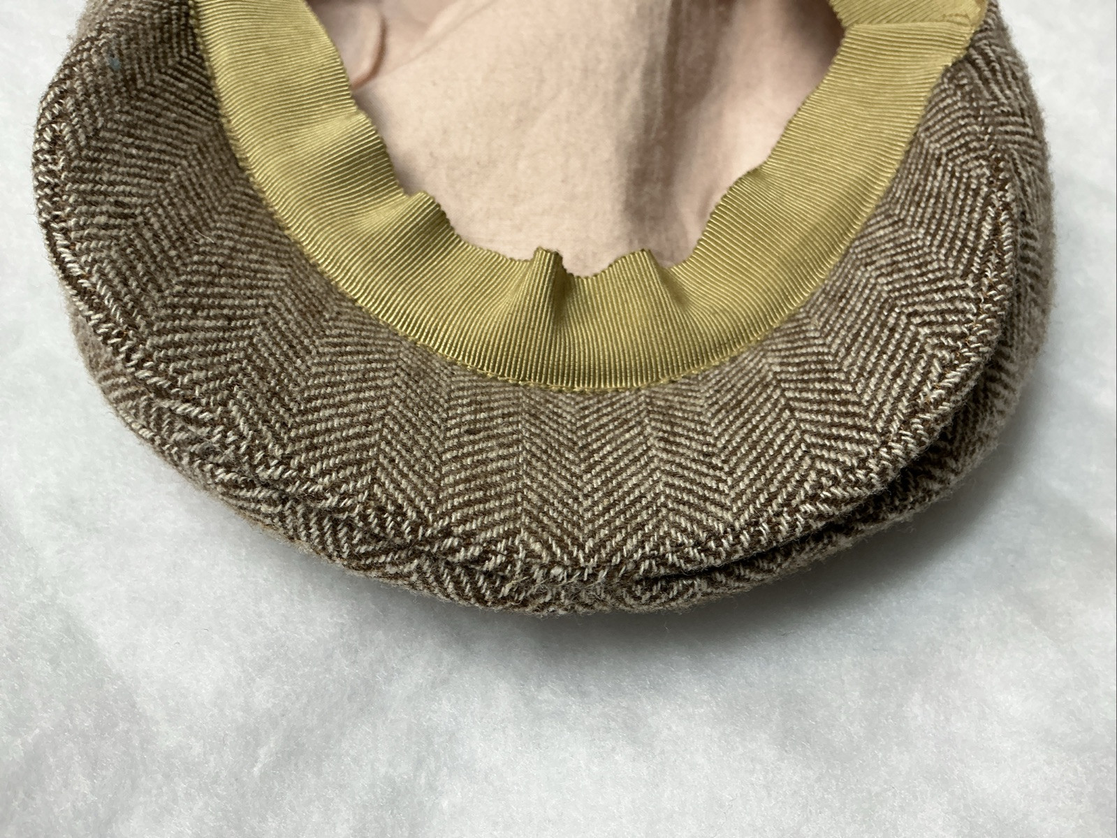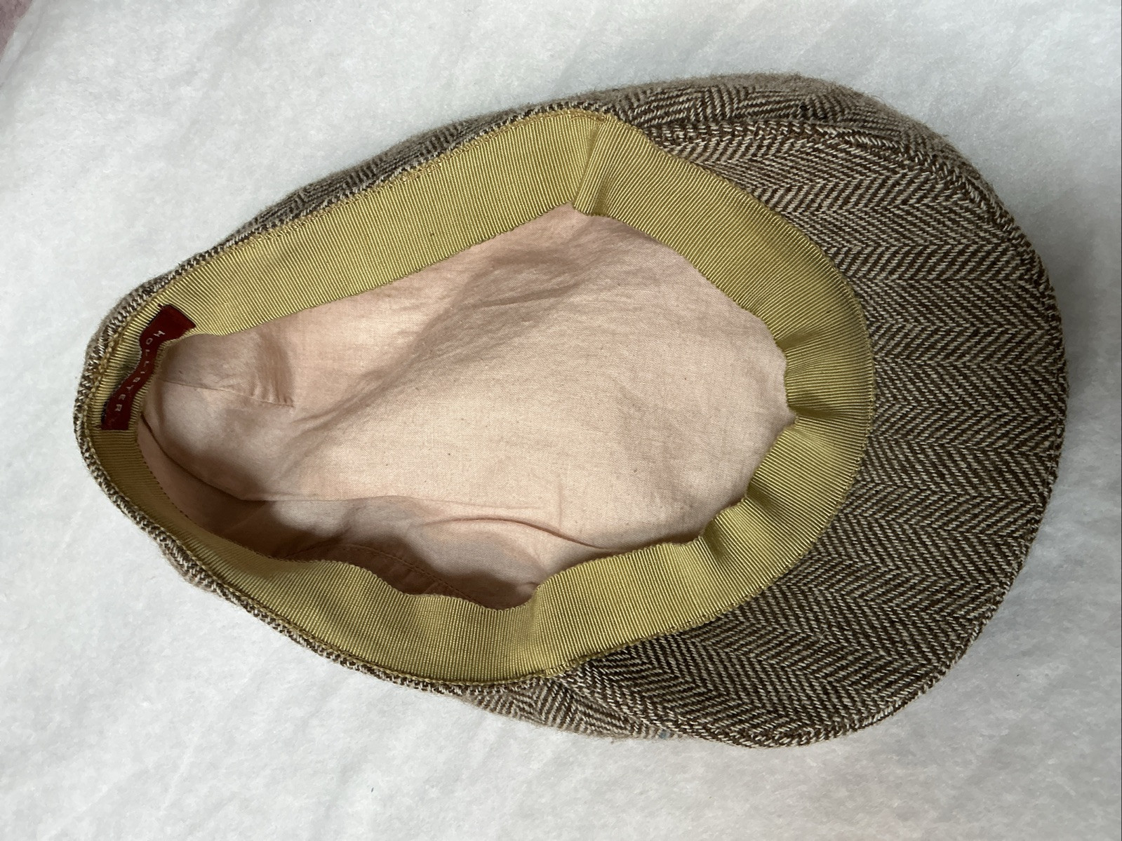 Elevate your accessory game with the Hollister Wool Blend Ivy Hat. This stylish piece is designed for men who appreciate a classic look with a modern twist. The herringbone tweed print adds a touch of sophistication, while the wool material ensures both warmth and comfort. It appears to have been stitched down at the front as shown in last photo. In nice condition Perfect for any occasion, this Ivy hat is a must-have for any fashion-forward individual. The brand Hollister is synonymous with quality and style, making this hat a great addition to any wardrobe. Don't miss out on the chance to elevate your look with this versatile accessory.