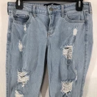 Elevate your denim game with these Hollister jeans for women. Crafted from light-washed blue denim, these slim-fit skinny jeans feature distressed accents, a button and zipper closure, and the iconic Hollister logo. The low-rise jeans are designed with a juniors’ size of 5 and a size type of juniors’ size 5. They are perfect for casual outings and can be paired with a variety of tops and shoes. Get ready to rock a stylish look with these Hollister jeans.