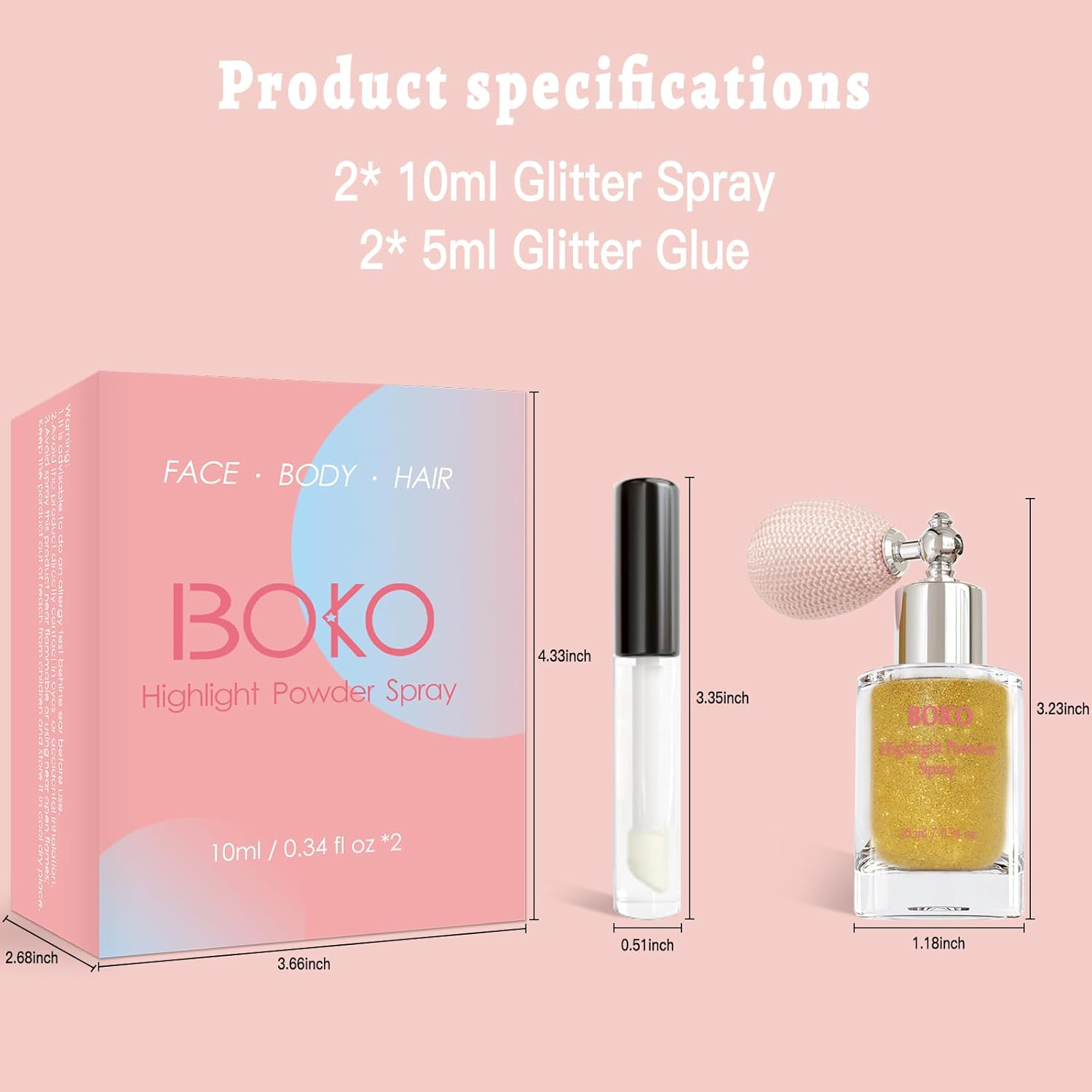 Body Glitter Spray, 2Pcs Holographic Glitter Hair Spray Long-Lasting Body Shimmer Powder Sparkle Highlighter Makeup Christmas Rave Accessories for Women Clothes Face Hair Nails- Sunshine Marigold Safe and Cruelty-Free: The highlight-glossing glitter spray is made of high-quality material, which is friendly to all types of skin, lightweight, and sparkling.Non-irritating to skin.The body glitter makes you shining likes star under any lights in a crowd. Using Tips: For a longer and better sparkle powder effect, you can prep body lotion or glitter glue gel beforehand so the spray body glitter can attach skin in place well. Unique Customized Colors: Boko glitter spray for face is rich in outstanding color options! Our glitter body spray has innovated 7 sets trendy colors for all the makeup amateur and professional makeup artists. Dreamy colors such as Rye Rose, Colorful Bubbles, Rainbow and more will highlight your daily face makeup. The spray glitter for body can help you create unique bride makeup, mermaid makeup, fairy makeup, rave makeup, face painting, or professional dancer stage makeup. Multi-purpose Body Glitter Spray: Add some glamour and radiance to your makeup with this cosmetic glitter spray. Cosmetic glitter effectively enhances facial contours, giving your face a radiant and seductive three-dimensional look. BOKO spray glitter dust is not only a highlighter makeup for the face, also a glitter spray for hair and body to sparkle hair, collarbones, back, shoulders, lip, eyeshadow, etc. And it is a pretty fabric glitter spray for clothing, hat, and more accessories. Easy And Elegant To Use: Our glitter hairspray comes in a vintage perfume bottle with a pink airsac, gently squeeze the airsac and the glitter powder sprays out evenly. This sparkle hair spray is compact and lightweight, making it easy to carry around. Removing the glitter powder is simply a matter of rinsing with water. Tips Please shake well before using the face glitter and keep it in a cool place after use to prevent moisture caking. Sparkle on All Occasions: The hair glitter spray will make you stand out under the lights at any rave. Such as singer concerts, red white blue patriotic flag theme parties, 4 of july Independence Day, Christmas, festivals, themed events and more. Our festival glitter can be used with face painting, mermaid hair accessories, unicorn glitter, and costume makeup, This hair glitter will create a glamorous makeup for you. Also, our hair spray glitter is one of the great gifts for girls. Product Description Easily enhance your makeup with our versatile body spray glitter Effortlessly add a touch of glamour to your skin or hair with our exquisite body glitter powder. Unleash your creativity and express your individuality with our rainbow glitter. Apply the gel to your skin and lightly mist our glitter makeup spray for a glamorous look. The video showcases the product in use. The video guides you through product setup. The video compares multiple products. The video shows the product being unpacked. 1. Indulge in the epitome of luxury with our facial glitter, providing a flawlessly effortless application that enhances your skin with a stunning, long-lasting sparkle. 2. Discover our spray body glitter in 7 captivating sets, each offering a unique combination to meet all your sparkling desires. Loose glitter leaves colorful sparkles on the skin for an eye-catching look! Our hair and body glitter spray will give you an unparalleled radiance. It's accessory for beach getaways, exhilarating concerts, vibrant stages, red white blue patriotic flag theme parties, 4 of july Independence Day, paris olympic, and unforgettable themed events. About Boko Body Glitter Spray 1. Not only is our spray glitter for adding sparkle to makeup looks, but it also acts as a blank canvas for your imagination. Our glitter spray for flowers, resin crafts, scented candles, tasseled hemp, and even anything else to need glitter everywhere. With our versatile gold glitter spray, the possibilities are truly endless! This spray body glitter allows you to customize your desired sparkle look on various surfaces, making it great for any occasion or event. So whether you're aiming for a subtle touch of sparkle or a bold statement piece, our hair and body glitter spray is a tool to help you achieve your desired look. 2. Elevate your beauty game with our versatile glitter for body. Whether you're looking to enhance your face makeup, create captivating eye looks, embrace body art, or add a touch of sparkle to your hair accessories, our sparkle spray is great choice. With its high-quality formula, it effortlessly glides on, giving you a stunning, long-lasting sparkle that will make heads turn. What sets our iridescent glitter spray apart from the rest is its easy removal process. Simply wash off with water, and voila! No more hassle or frustration. You can experiment with different looks and styles without worrying about the aftermath. 3. Our glitter spray for hair and body is designed to add a touch of magic to any occasion, making you shine brighter than ever. From intimate gatherings to exciting events, our glitter setting spray effortlessly elevates your everyday routine, turning ordinary days into extraordinary moments. 4. Suitable for any situation, our versatile face and body glitter effortlessly transforms your look, enhancing your style and making a statement. Whether it's a romantic date, a costume party, a holiday celebration, or a captivating performance, our iridescent tulip glitter spray paint adds a radiant glow that captures everyone's attention. 5. The glitter spray set include 2pcs glitter spray total 20ml /0.68 fl Oz, and also include 2 glue. 6. Tips: Keep away from fire and out of reach of children in a dry, cool place. This glitter spray must be avoided on the sensitive areas and on broken, inflamed or itchy skin. 7. How to Use: Our body glitter spray is easy to use. Begin remove the cover, then gently squeeze the ai