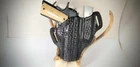 Holster For 1911 4 Inch Barrel hand stamped Black Basket Weave With Mag Holder Attached right hand handcrafted by ADS leather works