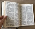 Explore the timeless wisdom of the Holy Bible in this reference edition. This King James Version is perfect for study and reflection. Published in 1976 by Thomas Nelson Publishers, this leather-bound edition is in giant print for easy reading. It contains the complete Old and New Testaments, along with valuable study helps. Binding is firm, and pages are well-preserved despite heavy markings and light staining. The cover shows gentle signs of age, but overall, it remains a valuable addition to any collection. Only one in stock. Once it’s gone, it’s gone. Ships fast, packed with care. Click “Buy Now” to make it yours. ---- ✨ Details ✨ Publisher: Thomas Nelson Publishers Year: 1976 Format: Hardcover Length: 1849 pages Size: 10"x7"x2" ✨ Condition ✨ Fair. Heavy markings, light staining, and gentle cover wear. Negligible yellowing. See pictures. ✨ Disclaimer ✨ This book is sold AS IS. There are no refunds. Please review the images carefully to ensure you know what you're buying.