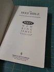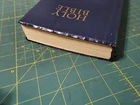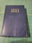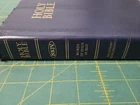This is a vintage Holy Bible in the New King James Version, published by Thomas Nelson in 1982. It is a nonfiction book intended for adults, with features like a dictionary, concordance, and red letter text for the words of Jesus. The faux leather bound Bible has a blue cover, measures 8.5 inches in height and 5.5 inches in width. It is a religious and spiritual book focusing on topics like Bible history, comparative religion, Christianity, and Jesus Christ.