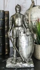 • This Medieval Crusader Knight figurine is made of polyresin, hand painted and polished individually. • This Medieval Crusader Knight figurine measures 7" tall, 3.25" wide and 2.5" deep approximately. The sculpture weighs about 9 ounces. • The Armored Knight With Sword and Shield Statue depicts a classical interpretation of a medieval warrior standing on a base modeled on rocky ground. This knight wears the suit of armor and carries a sword and shield at his side. • Collect these knight figurines in your home or gift him away to your medieval loving friends or loved ones! • This is an Ebros exclusive collection. Coke can placed next to the statue is not included with the listing. It is meant to provide size perspective of the item. Ebros Holy Roman Empire Crusader Knight with Sword and Shield On Guard Statue 7"Tall Video will open in a new window Using the mobile app? Copy this link into your browser: