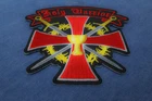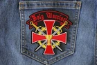 4x4 inch. Embroidered Patch with Plastic Iron on Backing. Patch can be sewn on to Leather Vests, Jackets or Chaps. Patch can also be ironed on to Denim Shirts, Hats or Bags. Iron on Patch at 280 Degrees Fahrenheit for 30 Seconds. Ironing on Application is a semi permanent way of attaching patches. Sew on the Patch for Permanent application. Do not iron on patches to Leather or Nylon Materials.