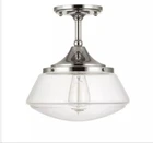 Beautiful vintage semi flush mount light fixture in a Polished Nickel finish. This fixture uses a single 60 watt bulb. Install a e26 socket Edison bulb to complete the vintage look. A clear glass shade allows plenty of light penetration to illuminate your installation area. This lantern shaped light fixture pairs well with both contemporary and vintage design styles. Home Decorators Collection McClelland fixture sold on Home Depot for $70.00 Polished Nickel Finish (Similar to Polished Chrome but slightly warmer looking) 10 Inch Diameter Clear Glass Shade 11.5 Inch Height Prewired and includes mounting bracket, screws, wire connectors, and installation instructions Installs easily into standard overhead electrical boxes *Light Bulb not included* F65
