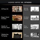 Home Hero 22-Piece Bar Set, Cocktail Shaker, Bartender Kit - Black Product Details Material: 22 Pcs - Silver Brand: Home Hero Color: Black Included Components: ['Cocktail Shaker', 'Hawthorne Strainer', 'Jigger', 'Bar Spoon', 'Muddler', 'Ice tongs', 'Wooden Stand'] Number of Pieces: 22 Manufacturer: Home Hero Package Dimensions: 12.32 x 8.43 x 7.6 inches Item Weight: 4.53 pounds Item model number: Bartender Kit Batteries required: No Included Components: ['Cocktail Shaker', 'Hawthorne Strainer', 'Jigger', 'Bar Spoon', 'Muddler', 'Ice tongs', 'Wooden Stand'] ['Cocktail Shaker', 'Hawthorne Strainer', 'Jigger', 'Bar Spoon', 'Muddler', 'Ice tongs', 'Wooden Stand']['Cocktail Shaker', 'Hawthorne Strainer', 'Jigger', 'Bar Spoon', 'Muddler', 'Ice tongs', 'Wooden Stand'] See more The 22-Piece Ultimate Bar Set - This all-inclusive bartender set is essential to any home bar. We have thoughtfully designed it in-house to include all the bar essentials like, strainers, bar spoons, cocktail shakers, muddlers, ice tongs, and much more. Be assured, your next party is sure to be a success! Includes An Elegant Wooden Stand - This bartender kit includes a beautifully crafted wooden stand that offers classic elegance to your home. Its quality build and sleek design will make this cocktail shaker stand out! Sleek & Classic Design - Our black and silver cocktail kit combines elegance and sophistication perfectly. Not only does it make a stylish statement, but it's also crafted with premium stainless steel materials that will last a long time. Recipe Book Included - Mix up your night with our cocktail bar kit! This fantastic set has all the bar tools necessary for crafting traditional and modern drinks. A helpful recipe book is included with directions for 10 delicious cocktails. Great Gift Idea - Our bartender kit is perfect for cocktail enthusiasts! All the bar accessories for the home bar set are all you need for crafting various drinks. Plus, this cocktail set comes packaged in a beautiful, giftable box.