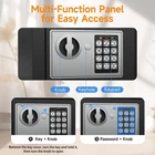 This is a mini safe that is easy to carry or keep at home and hotels. Let this safe protect and secure your valuables. (For example: jewelry, high precious metals, cash, important documents or other valuables). It's great for storing small things, but important to you. Its small size helps you easily hide or mount it on the wall or floor, and it hides nicely in a safe place. Exterior dimensions (H x W x D): 17 x 23 x 17 cm Interior dimensions (H x W x D): 16.84 x 22.86 x 11.93 cm Pre-drilled anchor holes for wall/floor mounting The floor and back come with pre-drilled anchor holes for added , or depending on your prefer to permanently secure the safe. Electronic locking system Equipped with an electronic locking system and mechanical override to ensure that no burglar has access to your precious valuables. ✅ Compact&Versatile ---Safe box with a compact size of 6.7''x9.0''x6.7'' is perfect for placing under a closet, drawer, or table. Compact yet not lacking storage capacity, the 0.23 Cubic Feet's capacity is sufficient to meet your home storage needs, providing a safe place to your cash, jewelry, important documents, and other valuable items. Looking for a thoughtful gift for your loved ones? This safe is an ideal choice ✅ Enhanced Features --- Made of reinforced alloy steel, this small safe box ensures durability and long-lasting protection. The included anti-scratch carpet and pry-resistant concealed hinges prevent any damage to your valuable items. Additionally, the high-strength bolts and corrosion-resistant coating add an extra layer of ✅ Key&Keypad Access --- Experience flexibility and convenience with different ways to open this mini safe. Use the personal password with the knob for everyday access, or utilize the key with the knob for quick entry. Simply insert the key, turn it counterclockwise, and then rotate the knob clockwise to unlock the safe door ✅ Easy Installation Options --- This home safe has pre drilled installation holes on the back and bottom for you, which can meet your needs whether you prefer wall mount or floor mount. It comes complete with all necessary mounting bolts and a comprehensive manual for hassle-free setup ✅ Package&Service --- Each package includes 1 x safe, 2 x keys, 2 x mounting bolts, 1 x anti-scratch carpet, 1 x detailed manual. Additionally, is available 24/7 to assist you. Trust us whenever you need