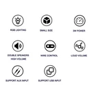 Features: Small Size, Powerful Sound: Despite its small size, this speaker delivers impressive rich bass, clear mids, and crisp highs for delightful listening. Dual Full- Speakers: Equipped with dual full- speakers, this speaker delivers a balanced and dynamic sound performance. Vibrant : Create a visually stunning with the built-in . The eye-shaped design adds a of fun to any space. Compact and Portable: With its compact and lightweight design, it is easy to carry and perfect for use with desktop computers, laptops, smartphones, and more. Easy Control: Take full control with the online controller. Adjust the , switch on/off, and turn on and off the , all at your fingertips. Specifications: Brand: Model Number: V-119 upgraded version Output : 3W Frequency Response: 30Hz-15KHz Channel: 2.0 SNR: ≥65dB Separation: ≥35dB Interface: 3.5mm audio jack + USB : USB 5V Color: Black, White (Optional) Audio Line Length: Approx. 160cm/5.25ft Item Size (Each): Approx. 10.2*10.0*6.4cm/4.01*3.93*2.52in Item Weight: Approx. 360g/12.69oz Package Size: Approx. 19.0*11.5*7.6cm/7.48*4.52*2.99in Package Weight: Approx. 420g/14.81oz Package List: V12073W-2 1 * Home Speaker Set (2 Speakers) 1 * User Manual