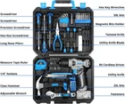 Product Description Drill Set: Tool Set With 8V Blue Cordless Drill, Home Tool Kit With Drill, Hand Tool Kits For Women 126 Piece 【8V Power Cordless Drill With Led】The 8V Power Cordless Drill Can Be Used For Drilling In Wood And Plastic, And Also For Tightening/Loosening Screws.Press The Switch To Adjust The Speed Of The Electric Drill, And The Maximum No-Load Speed Of The Mini Drill Is 800R/Min. Equiped With Built-In Led Light, And The Net Weight Of The Hand Drill Is Only 1.65 Pounds, And It Is Easy To Operate With One Hand. 【1.5Ah Rechargeable Battery,Type-C Cable】This Drill Is Supplied With A Type-C 1.5A Charging Cable.You Can Connect It To A Universal Charger Or Usb Output(5Vd.C)To Charge The Tool.The Battery Indicator Light Is At The Back Of The Tool, When The Green Battery Indicator Is Stable Without Blinking,The Battery Is Full. 【Ergonomic Design, Easy To Use】Cordless Tools Are Made Of Alloy Steel, Chrome Plated To Prevent Corrosion, Grip Is Anti-Skid And Comfortable. Light, Durable, Strong, Safe And Compact Tools Are Perfectly Suitable For Longer Life. Four Precision Screwdrivers Are For Smaller Fasteners On Home Appliances And Electronics, Two Full Size Screwdrivers And Bit Driver Handle When Only A Manual Touch Is Needed, A Hammer, Pliers, Tape, And Box Cutter For An All-Purpose Set For General Diy. 【Multi-Functional Cordless Drill Driver Tool Kit】This Set Of Professional Household Electric Tool Drills Contains The Most Practical And Advanced Tools For Design, Repair Or Maintenance. It Is Perfect For Decoration, Furniture Assembly, Drilling, Cutting, Gardening, Office Or Daily Home Maintenance. Tools Are Neatly Stored In A Sturdy Case To Keep Them Secure, Clean, Organized And Easy To Find. 【Package Included】1 *8V Cordless Drill; 1 *Hex Nut Screwdriver; 2 *Screwdriver; 4 *Precision Screwdriver; 6 *Twisted Drills; 8 *Hex Key; 1 *Magneitc Bits Holder; 10 *50L Bits; 18 *25I Bits; 9 *1/4" Sockets; 1 *Measure Tape Ruler; 50 *Fasteners; 1 *Claw Hammer; 1 *Adjustable Wrench ; 10*Utility Knife Blade ; 1 *Utility Knife; 1 *Long Nose Pilers; 1 * User Manual; 1 * 1 Year Warranty. About Us We are a reputable seller with many years of experience selling on eBay. Our goal is to provide high-quality products and excellent customer service. Shipping Items will be shipped within 1-3 business days when we received payment. (Orders are not processed on weekends & holidays) Tracking information will be sent once item is shipped. Delivery time depends on destination and other factors Item is shipped to ebay address. Leaving correct address can minimize delay. For international shipping and shipping to Guam, Hawaii and Alaska, Please contact us before placing the order. International buyers please note: Import duties, taxes and charges are not included in the item price or shipping charges. These charges are buyer’s responsibility. We will try our best to reduce the risk of the custom duties. Local pick-up is unavailable at the moment. Contact Us We reply any email messages within 1 business / working days(off-duty at weekend). If you do not get a response from us, then please check your junk or spam mailbox. Our Business hours: Mon-Fri 9:00-18:00, UTC/GMT +8 hours. Please contact us either by clicking "contact seller" in the "purchase history" section or simply click "ask a question" at the bottom of this page. If you are unsatisfied with our item or service, please contact us before leaving any feedback. We are committed to resolve all issues in a friendly and satisfactory manner.