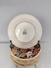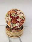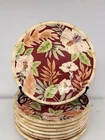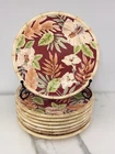 Home Trends Hibiscus Stoneware Salad Plates 8.75" Tropical Bamboo Rim Set of 8. Condition is Used Please note that the plates are used so they show normal wear and tear from use.