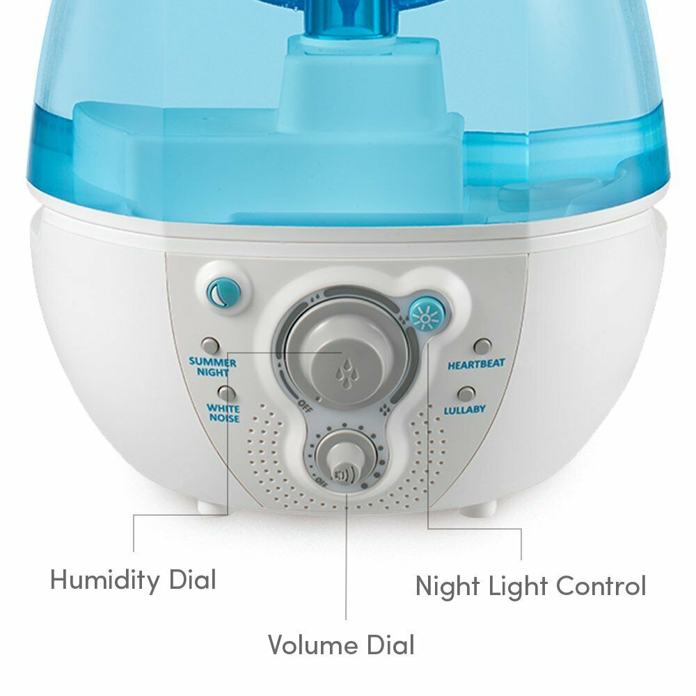 Ultrasonic Humidifier and White Noise Machine | Plays 4 Baby Lullaby Sounds, Calming Nightlight, Clean Tank Technology, 45 Hour Runtime, 1 Gallon Tank... Brand New Sealed Box. 4 SOOTHING LULLABY SOUNDS: Choose from 4 digitally recorded tranquil sounds: Heartbeat, White Noise, Summer Night and Lullaby. Add HoMedics MyBaby’s soothing noises to your baby’s sleep routine to help them fall asleep faster and stay asleep longer. The adjustable volume setting allows you mask background noise ensuring your baby gets a good night’s sleep or an uninterrupted nap. A sleeping baby means more sleep for the whole family! MULTI-USE HUMIDIFIER & SLEEP MACHINE: This one unit that has the function of 4 different devices! The MyBaby Humidifier features a soft illuminating nightlight, humidifier, air purifier, and white noise machine. Mist rooms up to 240 sq. ft. The 1-gallon tank has a run time of up to 45 hours. The ultrasonic purifier features a clean tank technology, preventing mold and mildew buildup. ALSO, choose from 4 relaxing sounds that will lull your baby into a deep sleep COMPACT & PORTABLE FOR TRAVEL: The MyBaby Humidifier is small and lightweight, it easily fits into any Mommy bag or suitcase. Bring it with you to create a familiar sleeping environment for your baby no matter where you travel! It measures 8.72" L x 8.68" W x 12.23" H and its cord is 6’ long CUSTOMIZABLE EXPERIENCE: The Ultrasonic Mister is completely customizable. Choose from its 4 lullaby sounds, turn the nightlight on or off, turn the volume louder or softer and increase or decrease the mist output. The therapeutic sounds can be used for relaxation, sleep, or travel. You can choose to play the relaxation sounds continuously, or choose from the auto-off timer which can be set for 15, 30, or 60 minutes to conserve energy WHAT’S INSIDE THE BOX: One MyBaby SoundSpa Ultrasonic Humidifier and White Noise Machine. One user’s manual. One 30-day money back guarantee. Technical Details Product Dimensions 8.72 x 8.68 x 12.23 inches Item model number MYB-W45 Is Discontinued By Manufacturer No Target gender Unisex Number Of Items 1 Batteries required No Item Weight 3 pounds Track Page Views With Auctiva's FREE Counter