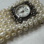 Honora Sterling Silver Quartz Freshwater Pearl Bracelet Watch Timeless Classic Description: Discover the perfect blend of elegance and functionality with this Honora sterling silver expandable bracelet watch. Featuring a timeless design, this piece is adorned with genuine freshwater pearls and showcases a delicate floral motif on the bezel. Its classic quartz movement ensures reliable timekeeping, while the expandable bracelet offers comfort and versatility. • Brand: Honora • Style: Expandable bracelet watch with freshwater pearls • Material: Sterling silver case back and accents • Movement: Quartz (Japan movement) • Condition: Pre-owned (good condition, gently worn; see photos for details) • Measurements: Approx. 1.5’’wide (expandable to fit comfortably) 7’’ with no stretch up to 8’’ Style Tip: Pair this versatile piece with a capsule wardrobe to add a touch of classic sophistication to your everyday look. It’s perfect for both casual and formal outfits, from pairing it with a crisp white blouse to complementing a little black dress. Key Features & Keywords: • Timeless freshwater pearl design • Sterling silver accents for a polished finish • Ideal for gifting or curating your capsule wardrobe • Perfect for vintage and classic style enthusiasts Shipping & Policies: I strive to ship within 24 hours of purchase (excluding weekends and holidays). Combine shipping on two or more items to save! Feel free to visit my eBay shop, Vintage Wowzers, for more curated treasures. Thank you for shopping with me! XOXO