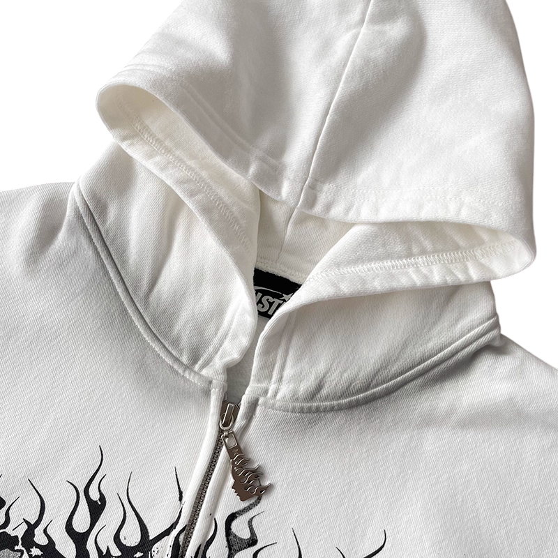 FEATURES: High-quality Hell Studios zip hoodie Soft cotton fabric with comfortable inner feel Large back graphic with signature Hell Studios silhouette logo Tribal flame prints on both sleeves Full zip closure with adjustable hood Elastic cuffs & hem for a secure, comfortable fit Perfect for spring, fall, layering, and everyday streetwear Unisex fit (Men & Women) SIZE TABLE (cm) (Hand-measured, may vary by ±2–3 cm) Size Length Chest Sleeve S 63 122 59 M 65 126 60 L 67 130 61 XL 69 134 62 SHIPPING & RETURNS Fast Worldwide Shipping Tracking available All sales are final. No returns or exchanges. Customer support replies within 24 hours