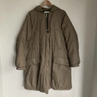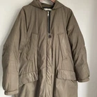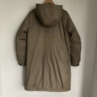 Good condition. Splotch marks on the front bottom and mark on the back of the right arm and left shoulder as shown. Hood detaches with buttons. Closure is zip with button over the top. Womens UK 12 Pit to pit 20'' Length 37'' Pit to cuff 20'' Thank you for considering a purchase from my shop!