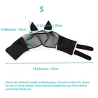 Horse Fly Mask With Ears Dear customer: We have three sizes, S ,M, L. Please choose the appropriate size for your horse. Thank you. Description: 1. Made of stretchable, adjustable, breathable and stretchy nylon material, it provides the softest protection for horses. 2. Adequate protection - Not only can it effectively prevent mosquitoes and harassment (including the smallest flies, flies, mosquitoes, other flying insects and air particles), but also effectively resist 60% of UV rays. 3. Sturdy black mesh. The grid is nice, it makes it easier for the horse to get better vision while keeping the tiniest bugs out. 4. Most fly masks are mesh, which is good for airflow. The fabric of the ear part is very lightweight. 5. Machine washable. It can also be sprayed with a hose and knocked off the dirt by hand. 6. Suitable for all kinds of horses, suitable for short-legged horses, adult horses, and small foals. Color: 2 black/blue Material: knitted fabric + mesh Due to the different models and body types of horses in daily life, please be sure to verify whether these sizes are suitable for your horse before purchasing. Product size: S:34.25*14.96*11.02 inches / 87*38*28cm M:35.43*18.50*11.02 inches / 90*47*28cm L:41.34*20.47*11.02 inches / 105*52*28cm Due to the different models and body types of horses in daily life, please be sure to verify whether these sizes are suitable for your horse before purchasing. Suitable for: Shortlegs, adult horses, small foals Product include: Horse Fly Mask*1