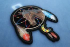 3x3.8 inch. Embroidered Patch with Plastic Iron on Backing. Patch can be sewn on to Leather Vests, Jackets or Chaps. Patch can also be ironed on to Denim Shirts, Hats or Bags. Iron on Patch at 280 Degrees Fahrenheit for 30 Seconds. Ironing on Application is a semi permanent way of attaching patches. Sew on the Patch for Permanent application. Do not iron on patches to Leather or Nylon Materials.