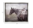 Floating Frame Sizes Include Standard: 21 x 1.7 x 17 Oversized: 31 x 1.7 x 25 Wall Art is Ready to Hang with Hardware Free Hanging. No installation required. For Easy Set Up Lean or Layer Artwork on Shelf or Against Wall. Our elevated 1.7" Thick Floating Frame is the perfect complement to our canvas style Wall Art. We use only the highest quality inks in house with industry leading printing solutions. Canvas is hand stretched over a durable wood foundation and then mounted securly into a Modern Box Frame. Made in the USA. Artwork Relates To: Animal, Horse, Mammal, Saddle, Halter, Stallion, Andalusian Horse Design by Milli Villa