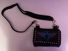 This stylish Hot Leathers pouch is a must-have! The soft black leather with studs, turquoise heart, and tribal embroidery gives it a unique biker-chic vibe. Perfect for carrying essentials—it has a zipper pocket, magnetic closure, and an adjustable strap for waist or shoulder wear. Looks brand new and adds an edgy touch to any outfit. Love it!