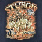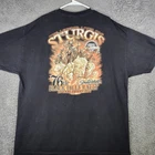 Vintage Hot Leathers t-shirt from the 2016 Sturgis Black Hills Rally. Features dramatic motorcycle graphics with 'The Legend Lives On' commemorating 1938-2016. Black shirt with orange/brown design. Has some wear and small holes near bottom hem, priced accordingly. Color: Black Department: Men Type: T-Shirt Fit: Classic Sleeve Length: Short Sleeve Character: Biker, Road Warrior, Ghost Rider, Iron Horse, Freedom Rider Pattern: Graphic Print Character Family: Sturgis Motorcycle Rally, Black Hills Rally, Hot Leathers, Motorcycle Culture, Biker Heritage Keywords: sturgis, black hills rally, motorcycle, biker, vintage, 2016, commemorative, hot leathers, graphic tee, motorcycle rally, south dakota all items have been cleaned and disinfected we stand behind all we sell so please contact us if you have an issue with any order