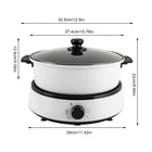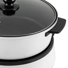 Specification Model: TKM-001 Color: White Material: ABS, Aluminum, Iron, Tempered Glass Surface Treatment: Die-casting, Non-stick Coating Shape: Round Style: Modern Number of Items: 1 Applicable People: 1-5 People Assembly Required: No Mounting Type: Countertop Product Care Instructions: Hand Wash Control Method: Knob Power Source: Corded Electric Plug Standard: US Standard Voltage: 110V Frequency: 60Hz Power: 1350W Capacity: 4L/4.2Qt Temperature Range: 180-280℃/356-536℉ Power Cord Length: 1m/3.28ft The Total Height of the Cooking Pot and Lid: 12.9cm/5.08inch Cooking Pot Diameter: 27.4cm/10.79inch Grilled Pan Size(D*H): 27*3cm/10.63*1.18inch Product Size: 32.5*22*29cm/12.8*8.66*11.42 inch Package Size: 34*22*36cm/13.39*8.66*14.17 inch Net Weight: 3.3kg/7.28 lb Hot Pot Multifunction Electric Skillet Non Stick Cooker Home Cook +Clear Lid NEW Specification Model: TKM-001 Color: White Material: ABS, Aluminum, Iron, Tempered Glass Surface Treatment: Die-casting, Non-stick Coating Shape: Round Style: Modern Number of Items: 1 Applicable People: 1-5 People Assembly Required: No Mounting Type: Countertop Product Care Instructions: Hand Wash Control Method: Knob Power Source: Corded Electric Plug Standard: US Standard Voltage: 110V Frequency: 60Hz Power: 1350W Capacity: 4L/4.2Qt Temperature Range: 180-280℃/356-536℉ Power Cord Length: 1m/3.28ft The Total Height of the Cooking Pot and Lid: 12.9cm/5.08inch Cooking Pot Diameter: 27.4cm/10.79inch Grilled Pan Size(D*H): 27*3cm/10.63*1.18inch Product Size: 32.5*22*29cm/12.8*8.66*11.42 inch Package Size: 34*22*36cm/13.39*8.66*14.17 inch Net Weight: 3.3kg/7.28 lb Gross Weight: 3.8kg/8.37 lb Package Included 1* Base with Power Cord 1* Cooking Pot 1* Grill Pan 1* Clear Lid 1* English Manual Other Accessories for Assembly Description Enjoying a steaming hot pot at home with friends and family on a cold winter day is a great pleasure and happiness. This high-powered and easy-to-clean non-stick electric hot pot is an excellent choice for family/friends gatherings, adding more fun to your leisure time. It has functions of frying, boiling, steaming, stewing, baking, hot pot, and more, which is also your right hand to complete various cuisines. Key Features Spilt Design: With a split design, this product be used as a barbecue pot, saucepan, stockpot, milk pot, steamer, etc., which is convenient to meet different needs and easy to clean/store. It is also the ideal choice for business and travel. Infinite Temperature Control : Simulating the regulation of traditional gas stoves, this product allows you to infinitely adjust the temperature from 356-536℉ through the control knob to help you easily grasp the right temperature and improve the taste of food. Efficient and Even Heating : The large 1350W power, upgraded iron heating tube, and ring-shaped aluminum heating plate can realize efficient and uniform heating, making delicious food for you in a short time and enhancing the overall taste and flavor of the food. Large Capacity : The 10.79" widened cooking pot and 10.63*1.18 inches grill pan give you 4.2Qt capacity to cook more food for 1 to 5 people, so everybody has an opportunity to try out various ingredients, as well as enjoy their favorites. Protective Package: To prevent the product from being damaged and bumped during transportation as much as possible, we packed it with foam to protect your products to the maximum extent possible. Details Anti-scalding Handles : The anti-scalding handles on the cooking pot, grill pan, and lid make it easier for you to hold and move, and also protect your hands. Clear Lid: The clear explosion-proof tempered glass lid is convenient for you to check the food situation and make adjustments in time to reduce food burning. Its steam hole can timely eliminate excess steam and heat, prevent spilling, and maintain balanced air pressure inside the pot to effectively guarantee safety during use Non-slip Feet : The non-slip feet at the bottom can avoid slipping and scratching the tabletop. Plug Organizer : The plug organizer on the bottom effectively protects the plug while convenient storage. Hidden Dual-display Indicator: The two hidden indicator lights allow for an independent display of power and heating status, so you can get a clear indication at a glance. Round Corners: Compared with traditional square corners, an arc design can better take care of your skin. Application It is suitable for 1-5 people. It can be widely used in families, parties, dormitories, offices, apartments, barbecues, camping, travel, business trips, snack bars, roadside stalls, hotels, shops, restaurants, cooking schools, etc. to make porridge, pancakes, grilling meats, fried rice, vegetables, simmer, soup, cooking, sauté steak, chicken, noodles, oatmeals, eggs, dumplings, fishes, hot pot, etc. Notes Please note that the package does not include food. Please note that the insulation time will vary according to the climate of different regions and the temperature of foods. The heating plate is still very hot after use, do not touch it before cooling. And keep it away from children to prevent combustion accidents. Please do not heat the pan for a long time without water, otherwise, it will be damaged. Please do not touch or move the product while working. When the product is working, sometimes it is normal for the indicator light to turn off because the dynamic adjustment of the temperature controller is triggered. At this point, the product is exerting its insulation function. Please wait for 1-3 minutes, or rotate the knob to a higher power to allow the product to start heating again and the light will light up. In the initial few uses, it is normal to generate smoke or a burning odor on the heating plate at high temperatures, which is caused by the protective oil left on the spare parts and screws. After several uses, the odor will gradually disappear. Please clean this product before first use. Please unplug the power cord first and ensure that
