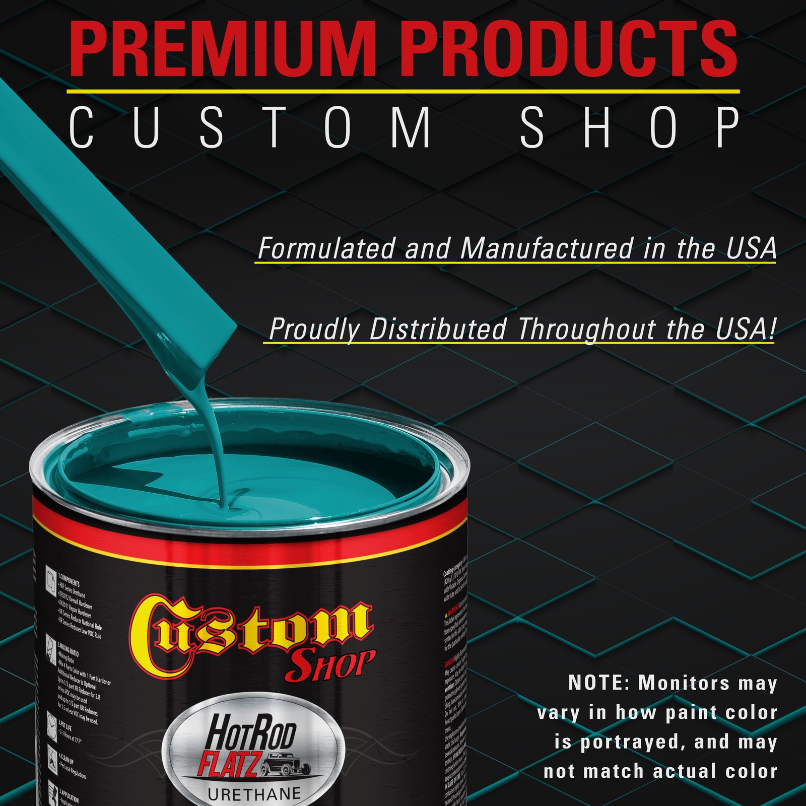 TCP Global Ebay Storefront Ordering | Shipping | Returns | International Product Information FLAMMABLE/HAZARDOUS ITEMS ARE SHIPPED VIA UPS GROUND/STANDARD TO THE LOWER 48 U.S. STATES & CANADA. ***SHIPPING VIA U.S. POSTAL SERVICE OR TO A P.O. BOX IS NOT AVAILABLE.*** RUSH AIR SHIPPING IS AVAILABLE IN CONTINENTAL U.S. FOR AN ADDITIONAL HAZMAT AIR SHIPPING CHARGE. CONTACT US PRIOR TO ORDERING FOR AIR SHIPPING QUOTE. IF ORDER IS PLACE FOR AIR SHIPPING YOU WILL BE CONTACTED FOR ADDITIONAL SHIPPING PAYMENT. INTERNATIONAL SHIPPING IS AVAILABLE. CONTACT US FOR SHIPPING QUOTE PRIOR TO ORDERING. Part# KUS KIT-HRF1518-M-QT Bright Racing Aqua - Hot Rod Flatz Flat Matte Satin Urethane Auto Paint - Complete Quart Paint Kit - Professional Low Sheen Automotive, Car Truck Coating, 4:1 Mix Ratio Complete 1 Quart Custom Shop Hot Rod Flatz Acrylic Urethane Auto Paint Kit. The kit provides over 1 quart of sprayable material. It has a 4 to 1 mix ratio and is 2.8 VOC when used as packaged, as no reducer is required (optional XR & UR series reducers sold separately). Paint Kit includes 1 Quart of Hot Rod Flatz Single Stage Acrylic Urethane Paint Color, 1 Half-Pint of Custom Shop Urethane Hardener (KH2012-HP), 3 Pack of 190 Micron Nylon Automotive Strainers, and a 3 Pack of Wood Paint Mixing Sticks. Hot Rod Flatz Acrylic Urethane System is a high-performance professional, easy-to-use single-stage paint coating system designed for overall automotive refinishing. No clearcoat is required or recommended. Pre-flattened ready to spray low-gloss color with a consistent satin sheen with the desired 30-degree satin primer appearance. A very durable, chemical, and solvent-resistant coating that also resists chipping and cracking and contains UV inhibitors to protect your finish from fading and chalking like traditional primers. Custom Shop Products are Made in the U.S.A., and we formulate, manufacture, and distribute our products throughout the USA. Our superior coating products only use the highest quality ingredients, which allows our customers to achieve consistent, high-quality professional results on all their painting projects! Complete Sprayable Quart Kit Complete 1 Quart Custom Shop Hot Rod Flatz Acrylic Urethane Auto Paint Kit. The kit provides over 1 quart of sprayable material. It has a 4 to 1 mix ratio and is 2.8 VOC when used as packaged, as no reducer is required (optional XR & UR series reducers sold separately). Paint Kit includes 1 Quart of Hot Rod Flatz Single Stage Acrylic Urethane Paint Color, 1 Half-Pint of Custom Shop Urethane Hardener (KH2012-HP), 3 Pack of 190 Micron Nylon Automotive Strainers, and a 3 Pack of Wood Paint Mixing Sticks. Hot Rod Flatz Acrylic Urethane System is a high-performance professional, easy-to-use single-stage paint coating system designed for overall automotive refinishing. No clearcoat is required or recommended. Pre-flattened ready to spray low-gloss color with a consistent satin sheen with the desired 30-degree satin primer appearance. A very durable, chemical, and solvent-resistant coating that also resists chipping and cracking and contains UV inhibitors to protect your finish from fading and chalking like traditional primers. Custom Shop Products are Made in the U.S.A., and we formulate, manufacture, and distribute our products throughout the USA. Our superior coating products only use the highest quality ingredients, which allows our customers to achieve consistent, high-quality professional results on all their painting projects! View all categories Warehouse Locations Las Vegas, Nevada South Carolina