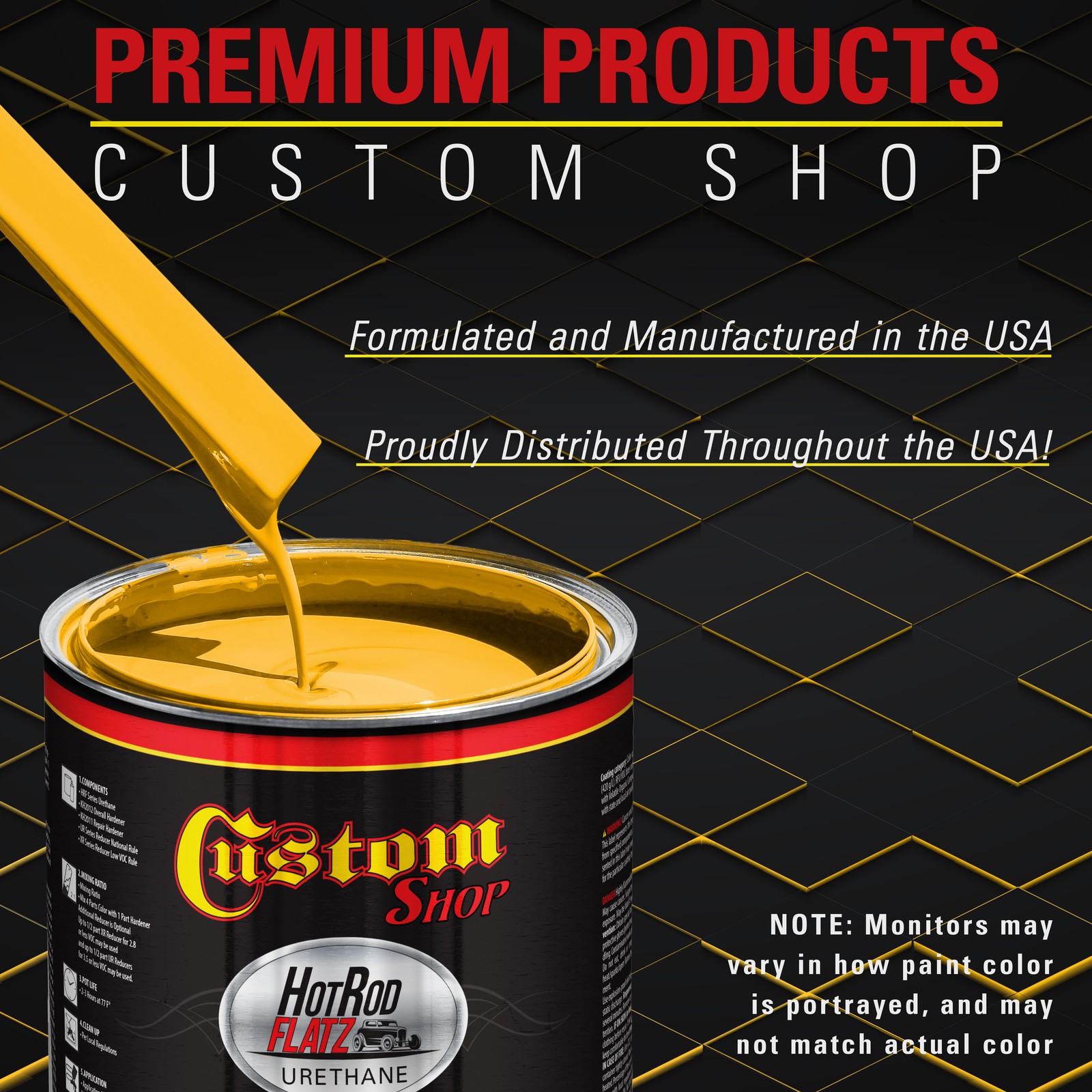 TCP Global Ebay Storefront Ordering | Shipping | Returns | International Product Information FLAMMABLE/HAZARDOUS ITEMS ARE SHIPPED VIA UPS GROUND/STANDARD TO THE LOWER 48 U.S. STATES & CANADA. ***SHIPPING VIA U.S. POSTAL SERVICE OR TO A P.O. BOX IS NOT AVAILABLE.*** RUSH AIR SHIPPING IS AVAILABLE IN CONTINENTAL U.S. FOR AN ADDITIONAL HAZMAT AIR SHIPPING CHARGE. CONTACT US PRIOR TO ORDERING FOR AIR SHIPPING QUOTE. IF ORDER IS PLACE FOR AIR SHIPPING YOU WILL BE CONTACTED FOR ADDITIONAL SHIPPING PAYMENT. INTERNATIONAL SHIPPING IS AVAILABLE. CONTACT US FOR SHIPPING QUOTE PRIOR TO ORDERING. Part# KUS KIT-HRF1408-M-QT Speed Yellow - Hot Rod Flatz Flat Matte Satin Urethane Auto Paint - Complete Quart Paint Kit - Professional Low Sheen Automotive, Car Truck Coating, 4:1 Mix Ratio Complete 1 Quart Custom Shop Hot Rod Flatz Acrylic Urethane Auto Paint Kit. The kit provides over 1 quart of sprayable material. It has a 4 to 1 mix ratio and is 2.8 VOC when used as packaged, as no reducer is required (optional XR & UR series reducers sold separately). Paint Kit includes 1 Quart of Hot Rod Flatz Single Stage Acrylic Urethane Paint Color, 1 Half-Pint of Custom Shop Urethane Hardener (KH2012-HP), 3 Pack of 190 Micron Nylon Automotive Strainers, and a 3 Pack of Wood Paint Mixing Sticks. Hot Rod Flatz Acrylic Urethane System is a high-performance professional, easy-to-use single-stage paint coating system designed for overall automotive refinishing. No clearcoat is required or recommended. Pre-flattened ready to spray low-gloss color with a consistent satin sheen with the desired 30-degree satin primer appearance. A very durable, chemical, and solvent-resistant coating that also resists chipping and cracking and contains UV inhibitors to protect your finish from fading and chalking like traditional primers. Custom Shop Products are Made in the U.S.A., and we formulate, manufacture, and distribute our products throughout the USA. Our superior coating products only use the highest quality ingredients, which allows our customers to achieve consistent, high-quality professional results on all their painting projects! Complete Sprayable Quart Kit Complete 1 Quart Custom Shop Hot Rod Flatz Acrylic Urethane Auto Paint Kit. The kit provides over 1 quart of sprayable material. It has a 4 to 1 mix ratio and is 2.8 VOC when used as packaged, as no reducer is required (optional XR & UR series reducers sold separately). Paint Kit includes 1 Quart of Hot Rod Flatz Single Stage Acrylic Urethane Paint Color, 1 Half-Pint of Custom Shop Urethane Hardener (KH2012-HP), 3 Pack of 190 Micron Nylon Automotive Strainers, and a 3 Pack of Wood Paint Mixing Sticks. Hot Rod Flatz Acrylic Urethane System is a high-performance professional, easy-to-use single-stage paint coating system designed for overall automotive refinishing. No clearcoat is required or recommended. Pre-flattened ready to spray low-gloss color with a consistent satin sheen with the desired 30-degree satin primer appearance. A very durable, chemical, and solvent-resistant coating that also resists chipping and cracking and contains UV inhibitors to protect your finish from fading and chalking like traditional primers. Custom Shop Products are Made in the U.S.A., and we formulate, manufacture, and distribute our products throughout the USA. Our superior coating products only use the highest quality ingredients, which allows our customers to achieve consistent, high-quality professional results on all their painting projects! View all categories Warehouse Locations Las Vegas, Nevada South Carolina