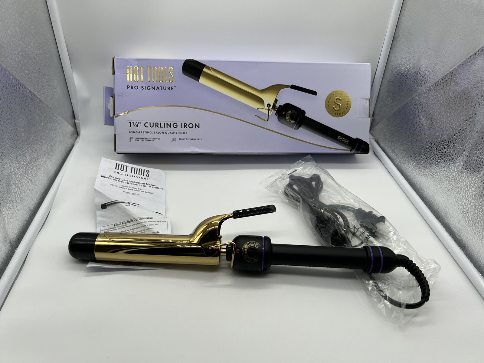Hot Tools Signature Series Gold Curling Iron/Wand, 1.25 Inch. 1 1/4". Used, tested still in good condition. Item: G3