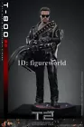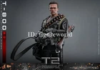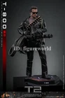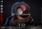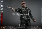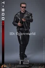 Packing List: - Authentic and detailed likeness of Arnold Schwarzenegger as T-800 in Terminator 2: Judgment Day - One (1) newly developed head sculpt with separate rolling eyeball system - Movie-accurate facial expression and skin texture - Approximately 32 cm tall - Body with over 30 points of articulation - Two (2) styles of interchangeable scalp (hair-covered and flipped) - One (1) newly developed interchangeable Endoskeleton revealing left arm - Twelve (12) pieces of interchangeable hands including: - One (1) pair of pistol holding hands - One (1) pair of pistol shooting hands - One (1) pair of fists - One (1) pair of gloved fists - One (1) pair of relaxed gloved hands - One (1) pair of pistol holding gloved hands - Each piece of head sculpt is specially hand-painted Costume: - One (1) new tailored black-colored genuine leather jacket - One (1) grey tee - One (1) black tee - One (1) pair of genuine leather pants - One (1) genuine leather belt - One (1) bandolier - One (1) pair of black-colored shoes Weapons: - One (1) machine gun - One (1) shotgun - One (1) pistol - One (1) grenade launcher - One (1) ammunition belt - Twelve (12) bullets Accessories: - One (1) CPU with storage device - One (1) pair of sunglasses - One (1) duffle bag - One (1) gift box with three (3) roses - A movie themed figure stand with character name