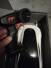 This Hot Wheels RC Tesla Roadster is so much fun! The sleek white design looks just like the real thing, and it handles smoothly with the remote. My kid loves racing it around the driveway—durable, fast, and easy to control. The open-box condition was practically new, and it arrived quickly. Perfect gift for any young car enthusiast!