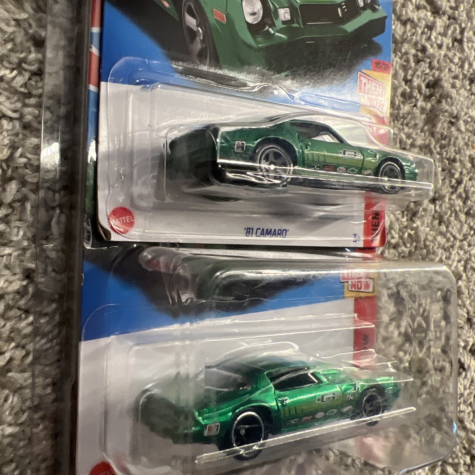 The Hot Wheels 248/250 '81 Camaro is part of the Then & Now series, featuring a Super Treasure Hunt version. This diecast Chevrolet Camaro in 1:64 scale is a 1981 model released in 2021. The green car comes with a protective case and an unopened box, making it a highly sought-after chase collectible for Hot Wheels enthusiasts